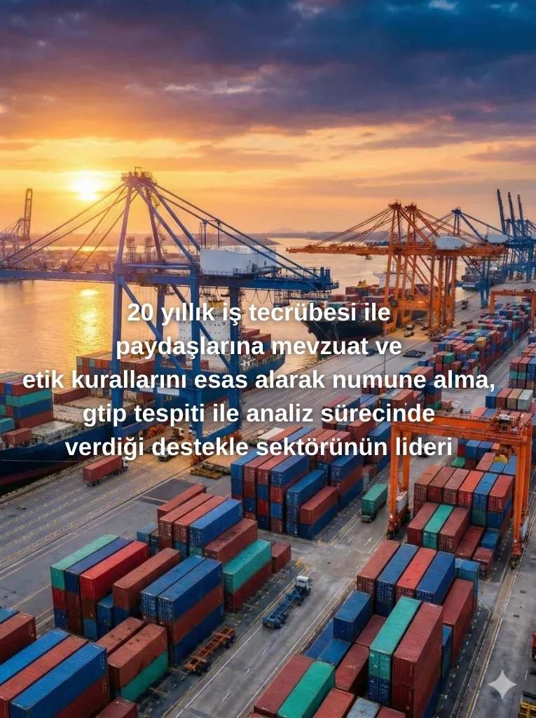 Mevzuatı ve etik kuralları esas alarak paydaşlarımıza Numune Alma, GTİP tespiti, Vergi hadleri ve Dış Ticaret Mevzuatı hakkında hizmet vererek sektöründe lider şirket olmak.